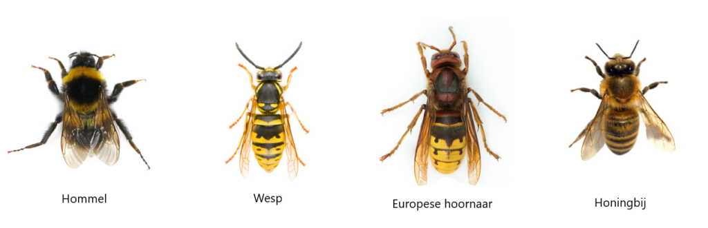 Ervaring leert dat imkers vaak gevraagd worden om een ‘bijennest’ te verwijderen. Bij aankomst blijkt dat het ook een hommelnest of wespennest kan zijn. De verwarring is begrijpelijk, immers het gaat om insecten die vliegen, zoemen en mogelijk steken. Er zijn overeenkomsten: ze hebben allen 1 koningin, hebben een angel om zichzelf te verdedigen en zijn actief zodra de temperatuur boven de 10 graden komt. Maar er zijn ook verschillen. Deze worden hieronder kort uitgelegd.