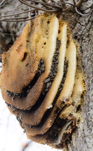 Een honingbij is een van 360 bijensoorten die in Nederland voorkomen. Ze worden ingezet voor bestuiving van gewassen en het winnen van honing. In de winter leven ze ook als volk (winterrust). Ze leven van stuifmeel en nectar (honing). Bijen hebben een kast of korf als huisvesting. Soms zie je een bijennest buiten in een (holle) boom.